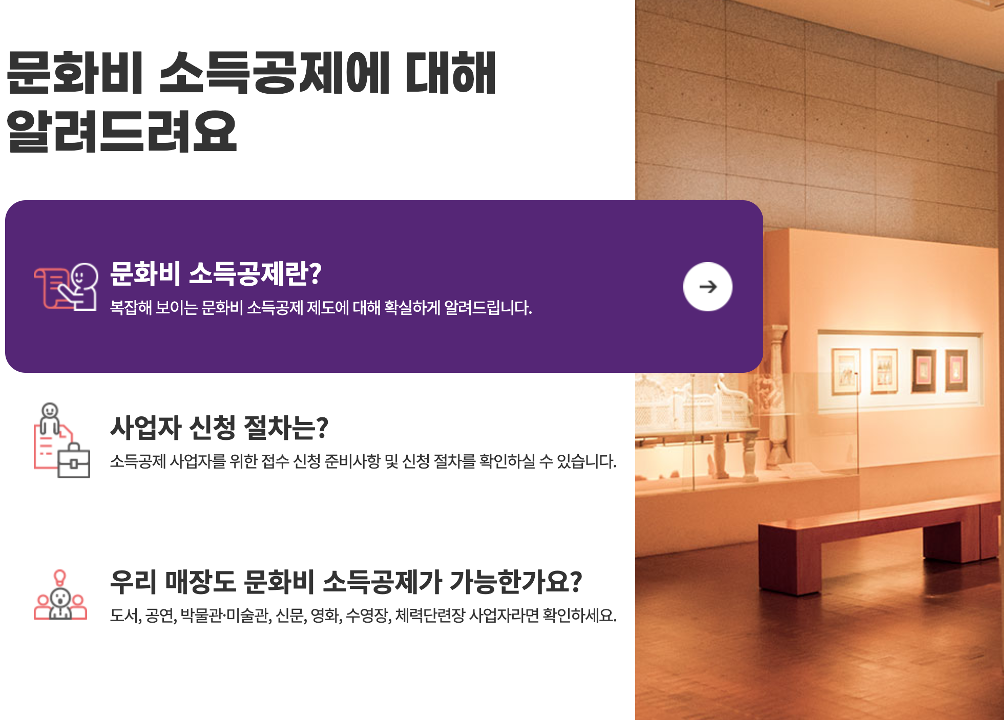 가장 먼저 확인해야 할 곳은 문화비 소득공제 누리집 입니다.
