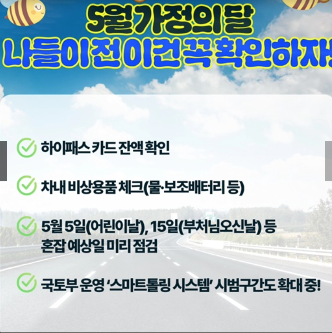 다가오는 5월, 사랑하는 가족과 함께 떠나는 여행이 더 즐겁고 안전할 수 있도록, 오늘 소개한 고속도로 이용 꿀팁을 꼭 기억해두세요!