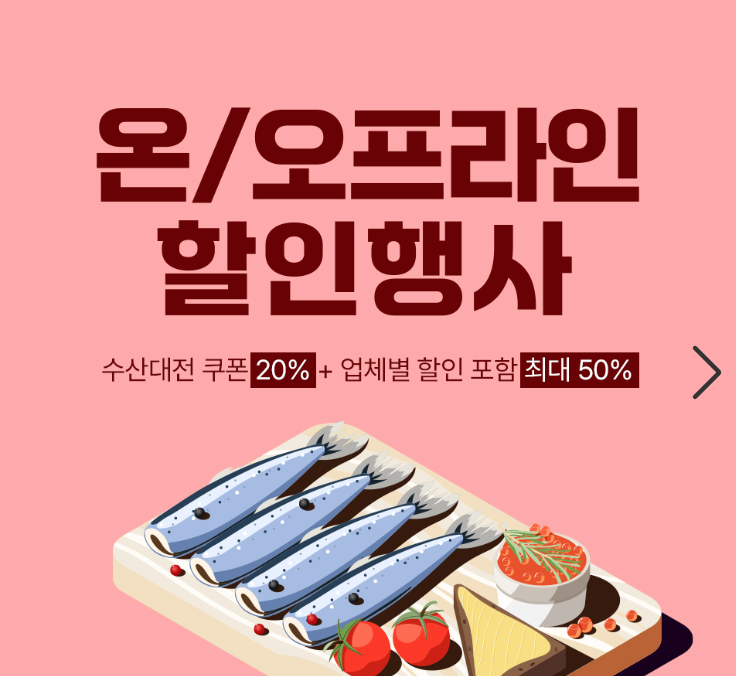 수산물 할인 정보는 대한민국 수산대전 공식누리집에서!