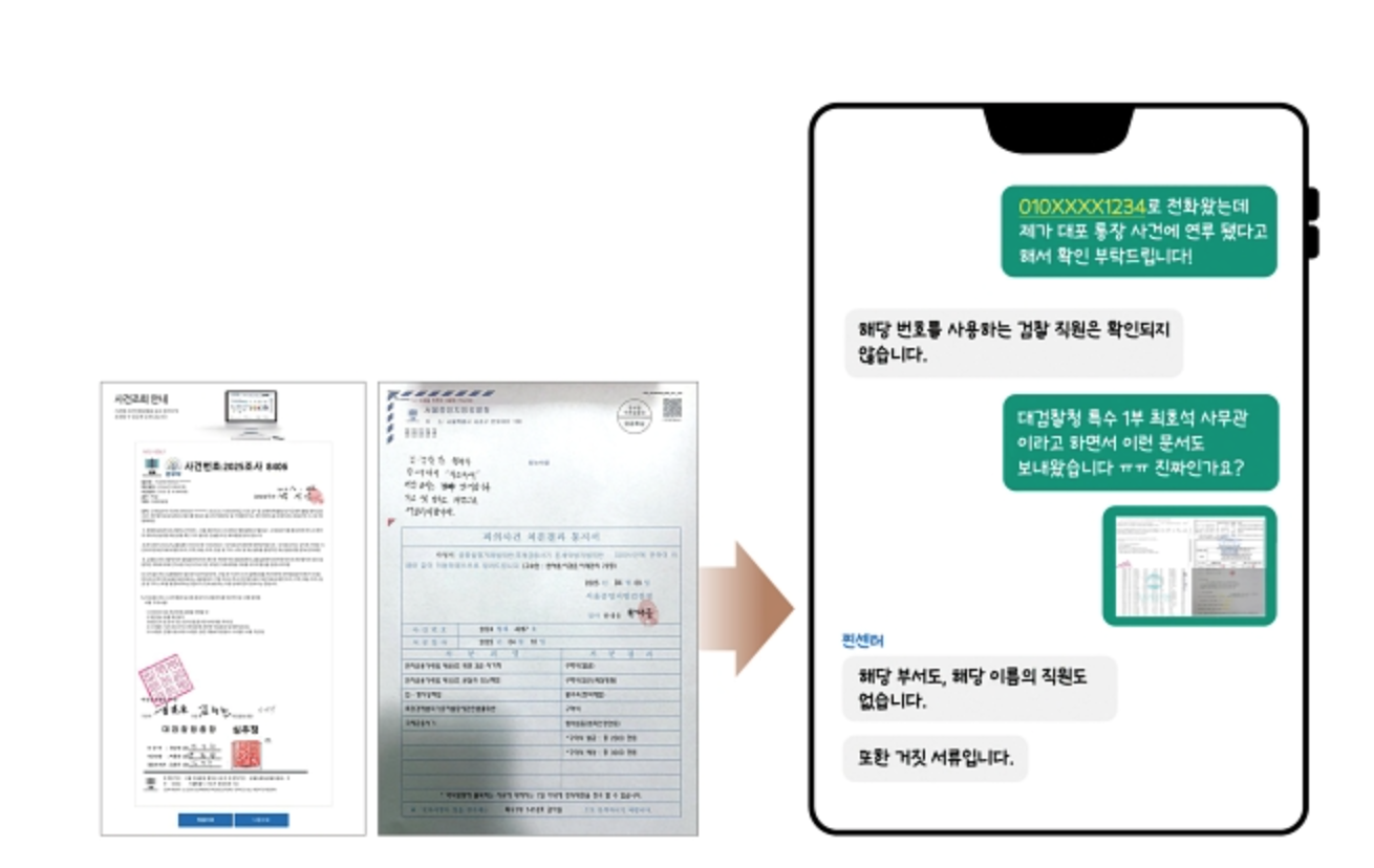 찐센터는 공문서가 진짜인지, 전화한 사람이 검사나 수사관이 맞는지 등을 신속히 확인해줍니다.