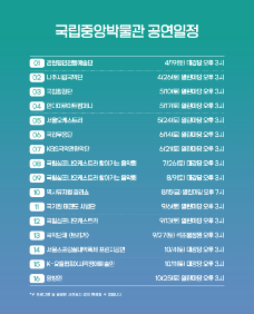 내용: 박물관문화향연 시리즈 중 하나로, 국립 문화예술기관이 함께하는 고품격 공연.
