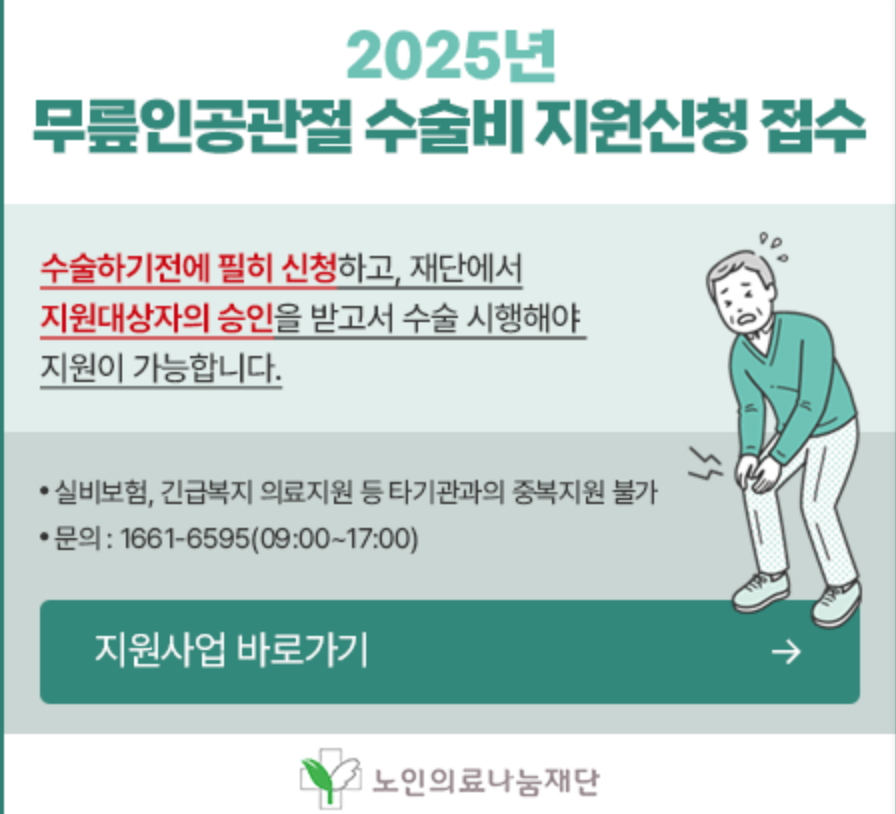노인의료나눔재단 무릎인공관절 수술지원 https://www.ok6595.or.kr/client/info/knee02.asp